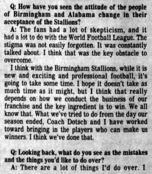 The Iron appeared to seal the game on a fourth-down incomplete pass but an unsportsmanlike penalty gave the Stallions a first down at the Birmingham 31-yard line with less than two minutes to play. Birmingham managed to force the Stallions into a 48-yard field goal attempt with 1:03 to play, and the kick sailed wide left.“They fly to the ball,” Lewis said of his defense. “They do a fantastic job, we ask them to sprint to the ball everyday in practice, and they do it. So when the ball gets free or comes open, they’re there to make the play.”